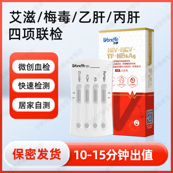 万孚(Wondfo)hiv艾滋检测试纸 乙肝丙肝梅毒艾滋四联卡传染病检测试纸居家自检