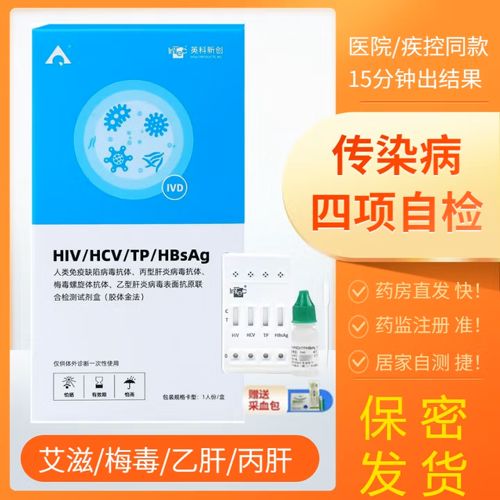 英科新创hiv检测试纸四合一 传染病四项试纸艾滋乙肝梅毒性病四联卡检测