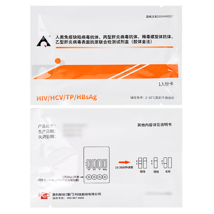 英科新创 英科新创hiv检测试纸四合一 传染病四项试纸艾滋乙肝梅毒性病四联卡检测